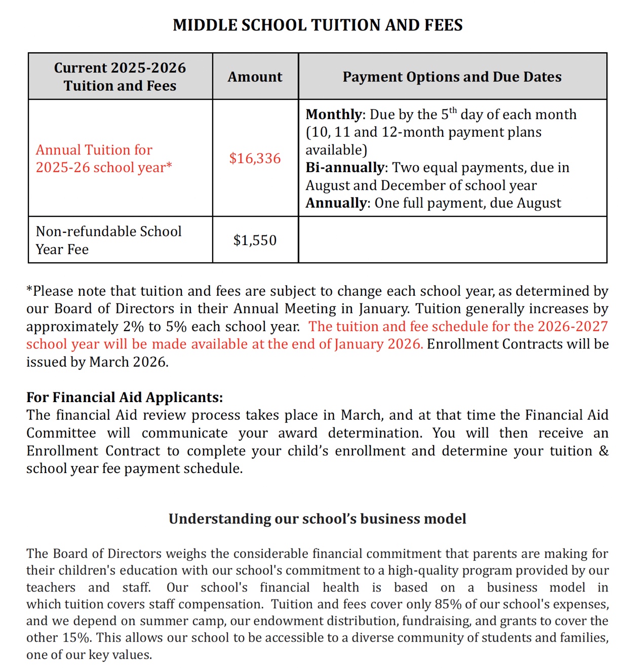 Middle School Enrollment Commitment Form: To commit for the 2026-2027 school year, please complete and sign this form, and submit along with the $2,500 non-refundable deposit, by December 19, 2025. Enrollment Contracts will be issued by March 2026.